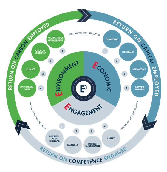 The strategy is based off the new «E3» model, designed and developed by Nexans. It is a unique production model, built in the context of a world that faces a series of ongoing crises, that relies on a synergy between economic performance and environmental performance, with the human factor intimately linked in the perspective of sustainable value creation.